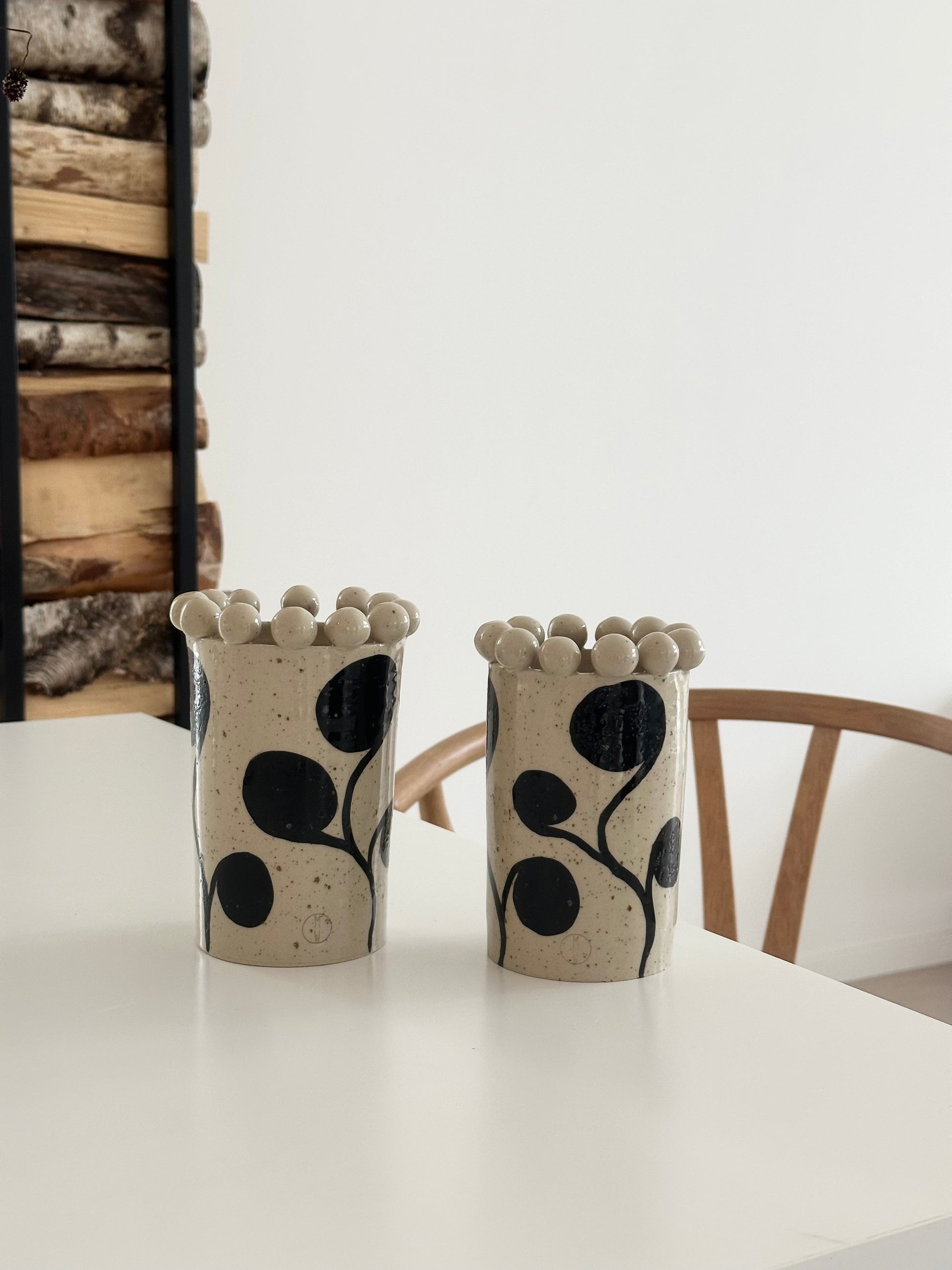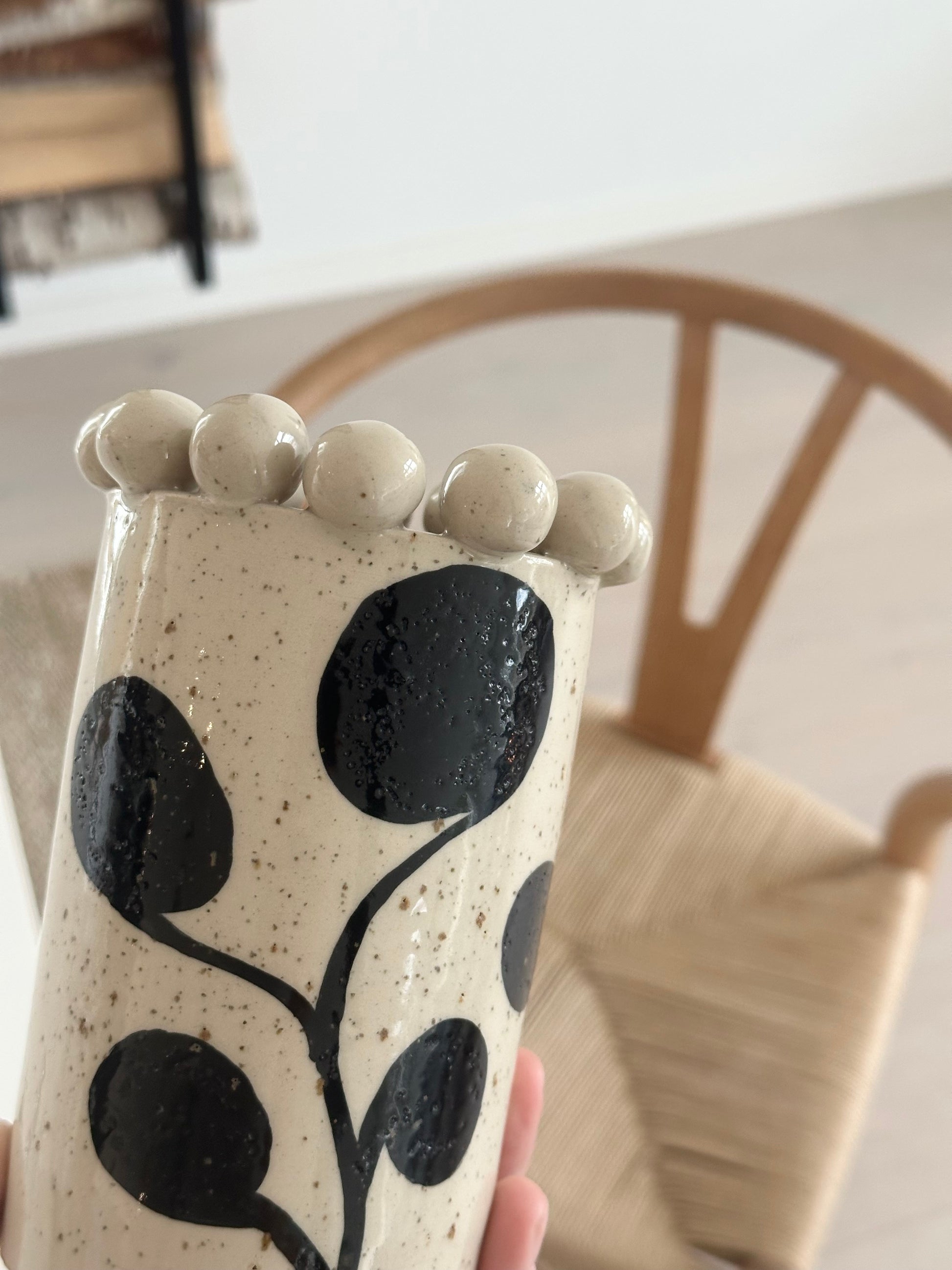 säljer billigare då det är små ”nålstick” i glasyren där det svartmålade mönstret är. Dvs inte nålstick över hela vasen utan endast där det är målat. I övrigt intakt.