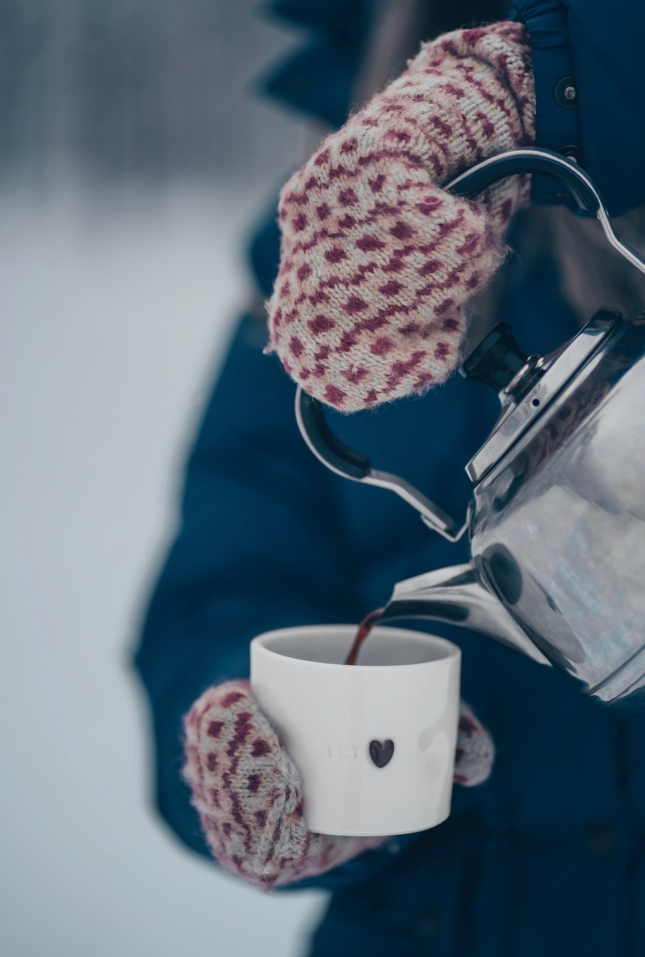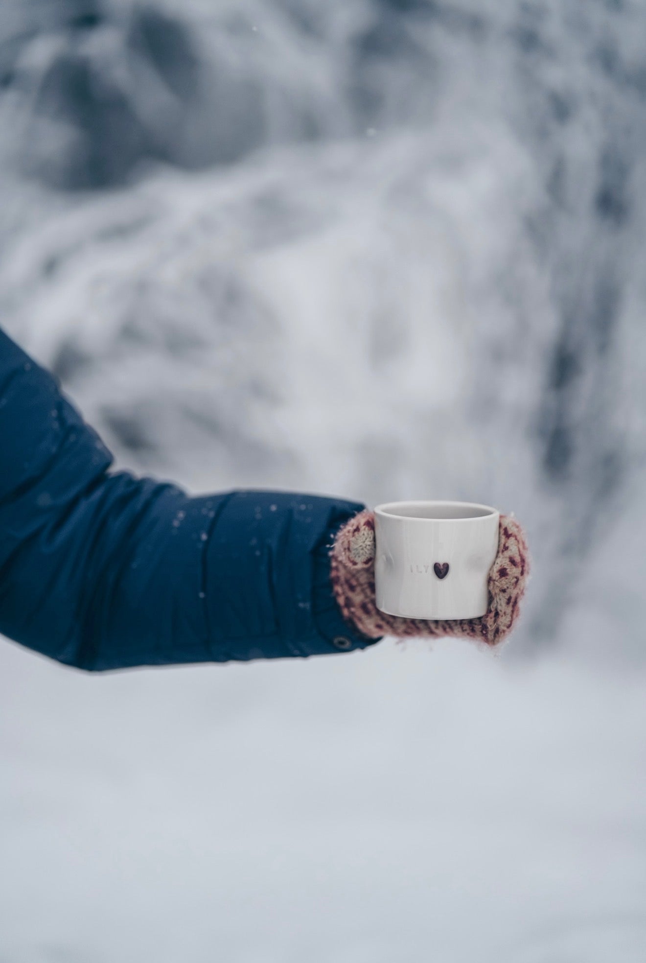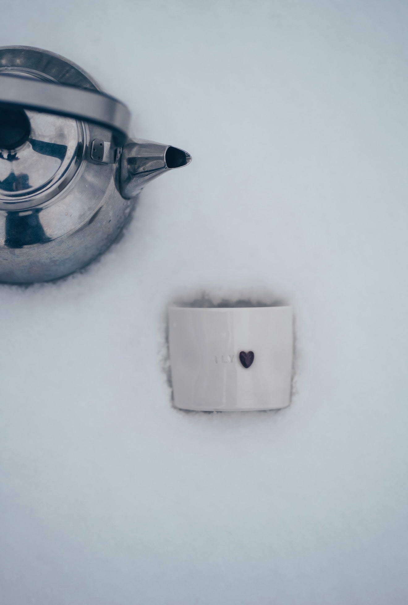 Drejad kopp i porslinslera. Handmålat hjärta i vinrött.